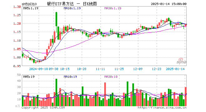 1月14日,银行ETF易方达(516310)涨1.36%,成交额3601.08万元。当日份额减少5190.00万份,最新份额为9.55亿份,近20个交易日份额增加4950.00万份。最新资产净值计算值为11.39亿元。